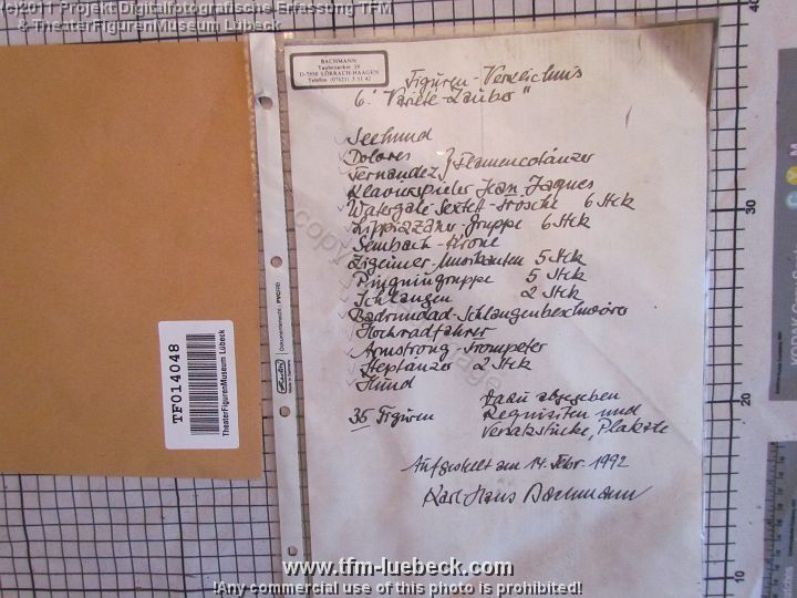 TF014063-1b Europa Deutschland, Figur, Holz, Bachmann an Fritz Fey, 2011 Bild 3374/16169 TheaterFigurenMuseum Lübeck