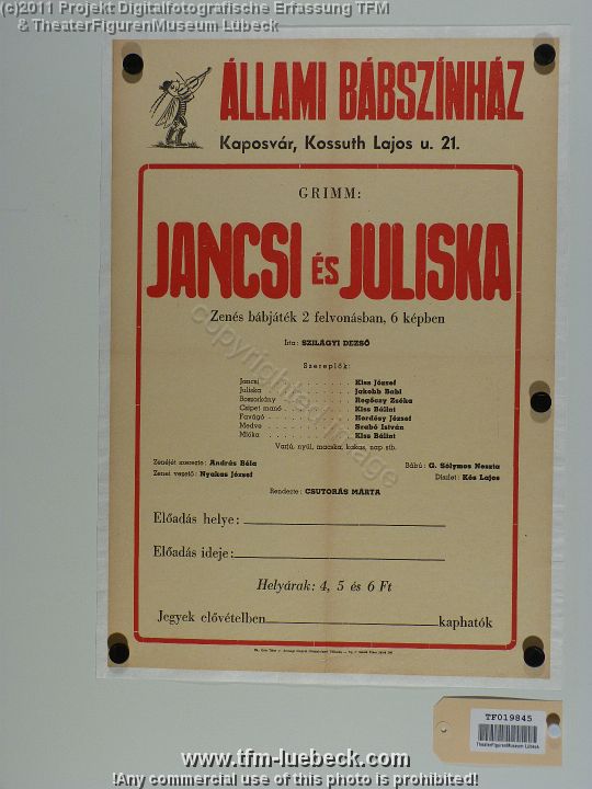 TF019852-2 Europa Ungarn Budapest, Plakat, Papier, Fritz Fey, 1962 Bild 15878/16169 TheaterFigurenMuseum Lübeck