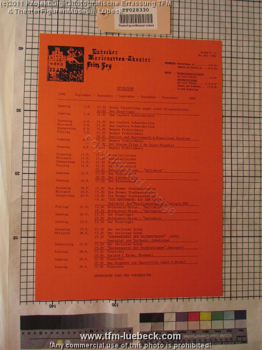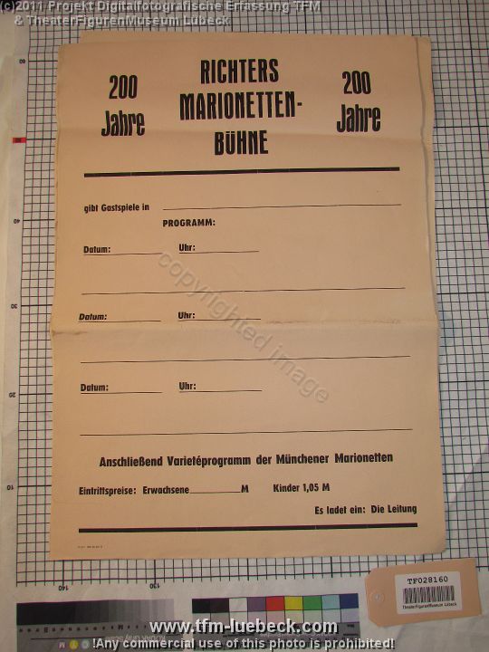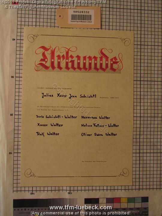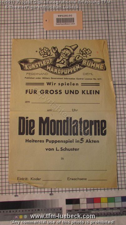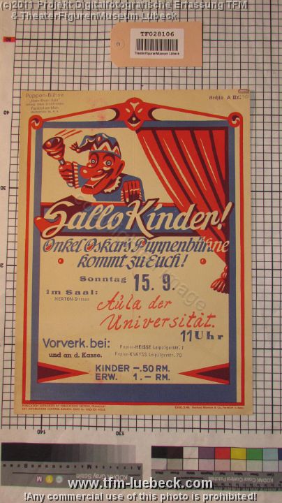 TF028332-1 Europa Deutschland Lübeck, Plakat, Papier, Schichtl an Fritz Fey, 2011 Bild 1168/1170 TheaterFigurenMuseum Lübeck