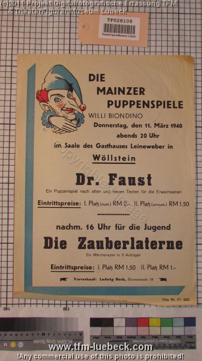 TF028108-1 europa Deutschland Wöllnstein, Plakat, Papier, Fritz Fey, 1948 Bild 921/1170 TheaterFigurenMuseum Lübeck